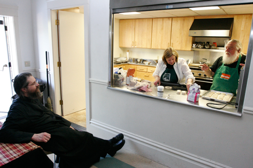 Протоиерей Петр Перекрестов, клирик Сан-Францисского собора (на фото слева), не был знаком со святителем Иоанном лично, но много лет встречается со всеми, кто его помнит (например, протоиерей Стефан Павленко - на фото справа), записывает их воспоминания, собирает архивные материалы. Уже отдана в печать новая книга о святителе, на русском языке, которая скоро появится и в Москве. На фото: в трапезной храма Всех Святых в земле Российской просиявших, в калифорнийском городе Бурлингеме, где служит отец Стефан Павленко