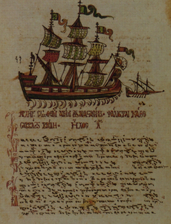 Так выглядят в записи (красный цвет) византийские ноты. Запись песнопения 1-го гласа из рукописи Синайского монастыря. XVIII в.