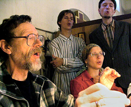 Отличительная особенность византийского пения — дополнительное интонирование звука, когда он как бы «колеблется». Такое интонирование считается особым искусством. К сожалению, для слушателей школы эта степень мастерства пока недоступна. Закралось сомнение: быть может, чело- веку, не воспитанному в этой музыкальной традиции, научиться дополнительно интонировать звук вообще невозможно? Константин Фотопулос: «Многие думают, что русские не могут научиться этой музыке, что это дано только грекам. Но это неправда, ведь русские — такие же люди, как и греки. И умение делать эти «плавные переходы», как мы их называем, — все это приходит в процессе обучения. За два года, что занимаются наши ученики, и греки не могли бы этому научиться. Впрочем, можно привести пример русского юноши по имени Александр, который два года как учится в Греции византийской музыке — у него уже получается исполнять эти плавные переходы. А обучение в нашей школе как раз рассчитано на три-четыре года».