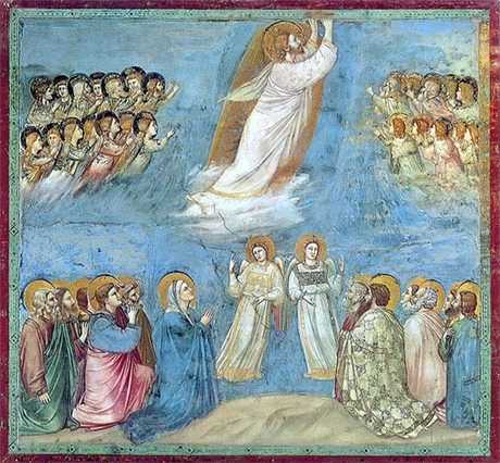 Пребывая в такой благодушной, благоговейной детской растерянности, словно это был сладкий, радостный сон, они увидели, как Христос поднял руки, благословил их и окутанный облаком стал медленно отдаляться от них и возноситься на небо.
